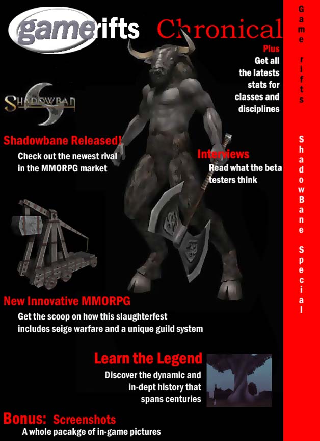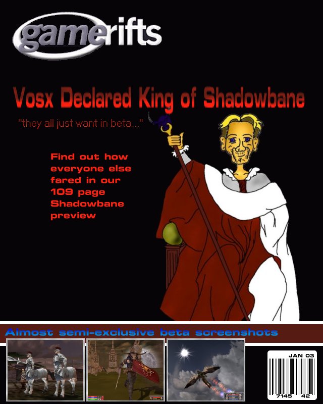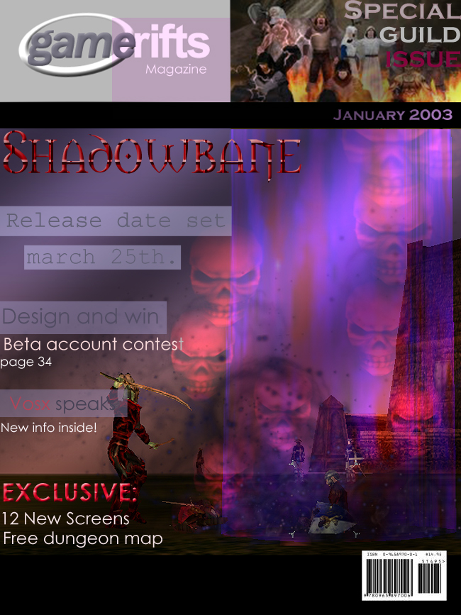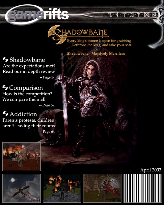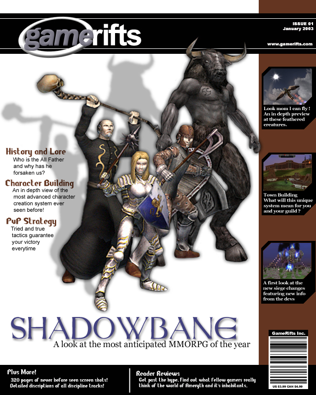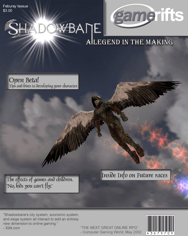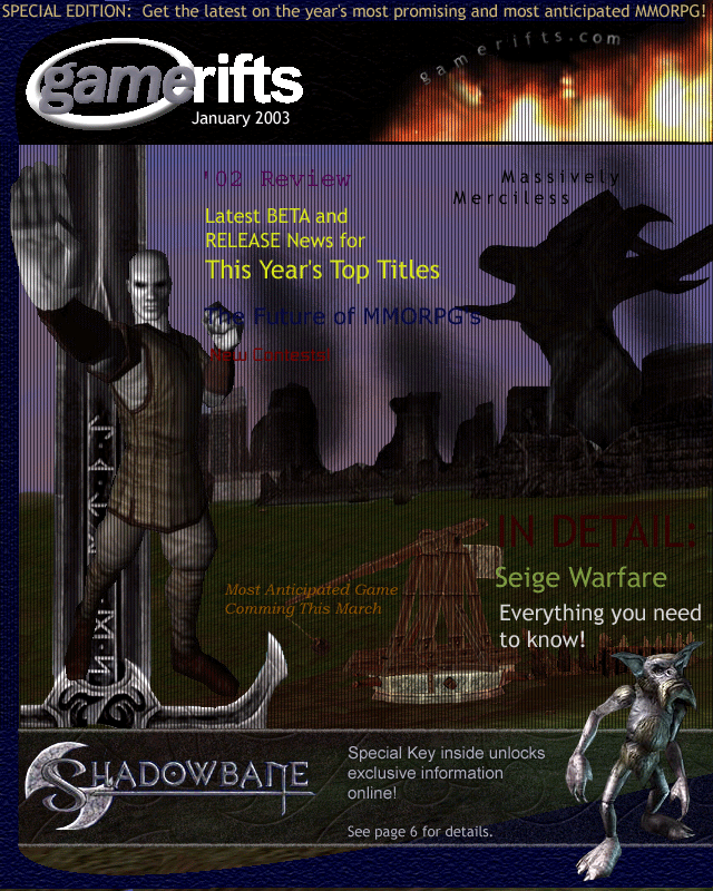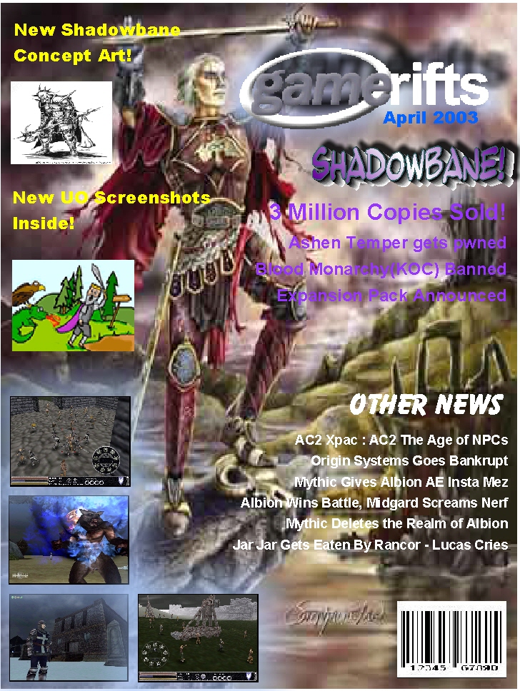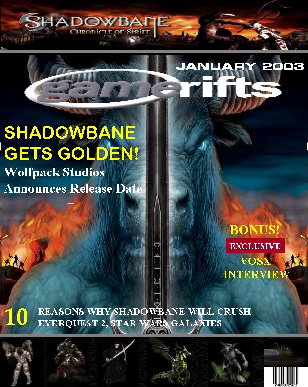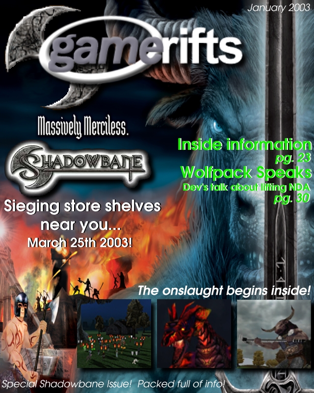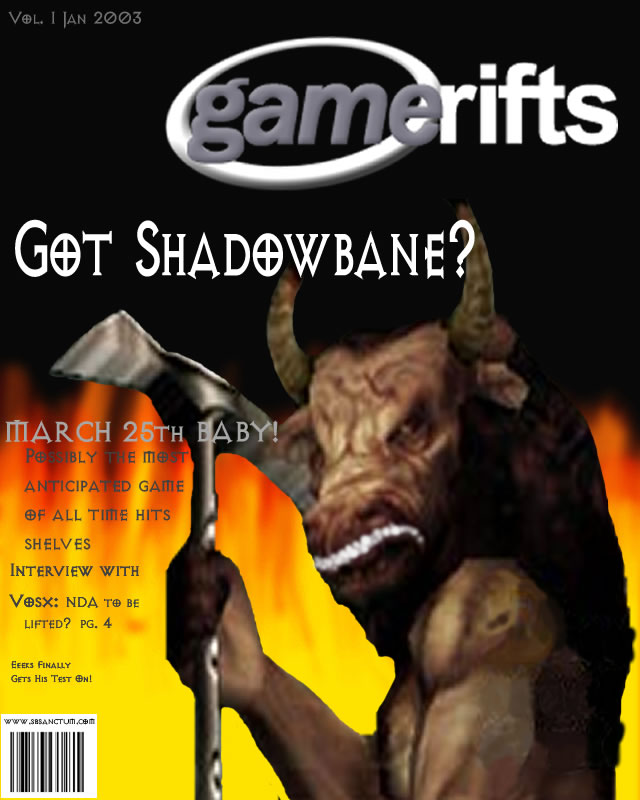 We’ve always wondered what this site would look like, if we were to shut-down and convert it to a monthly magazine dedicated to massively-multiplayer online games, kind of like MOG Magazine. Thanks to Valkyrie of SBSanctum we found out when she launched a community contest for the Shadowbane fans in which they put to use their artistic talents and designed a cover dedicated to the release of one of the most anxiously awaited MMO games to be in development. We even kicked in a prize, and Chris “Vosx” Mancil awarded the runner-ups not with ten beta accounts, but twenty. That rocked!