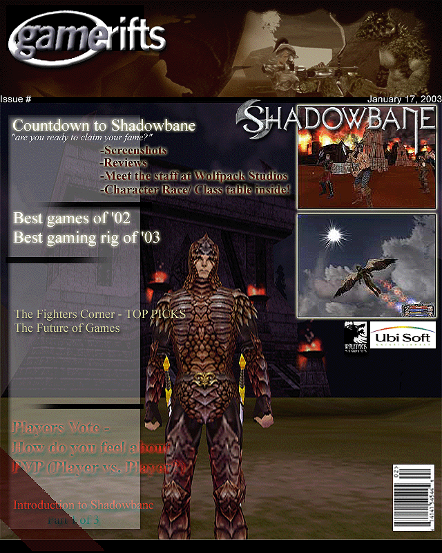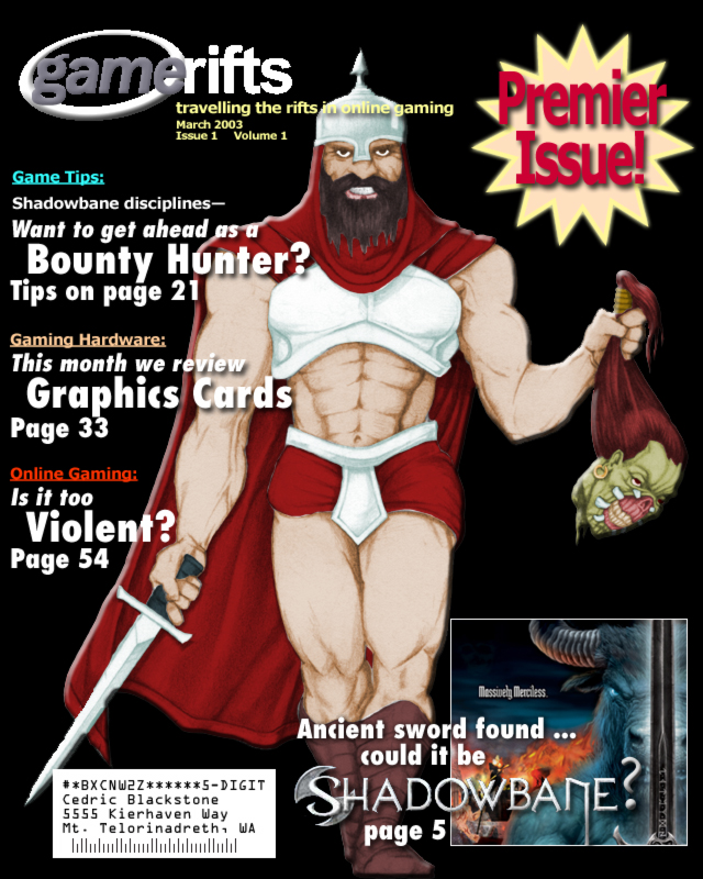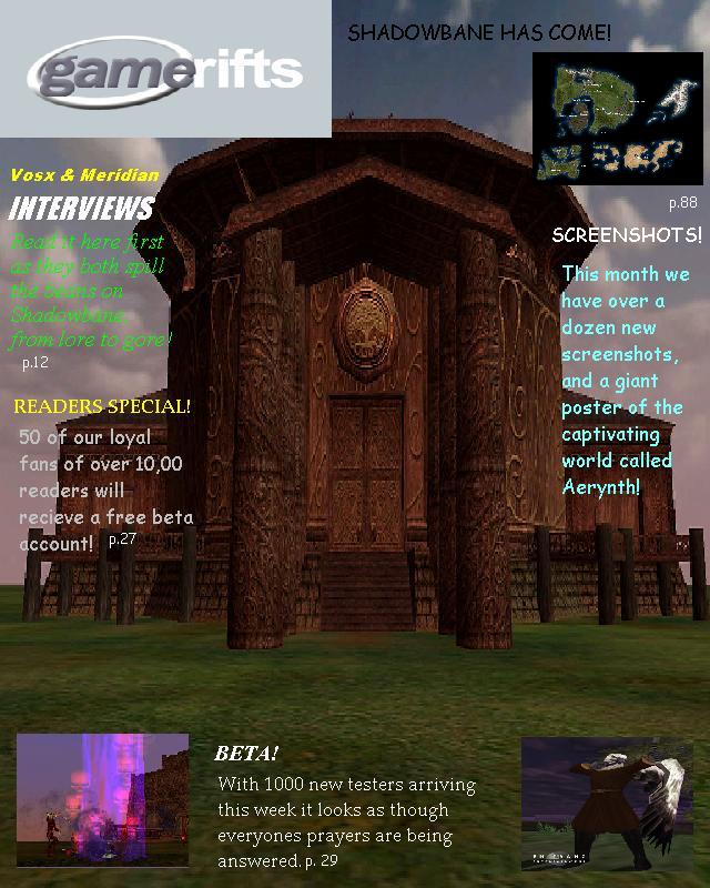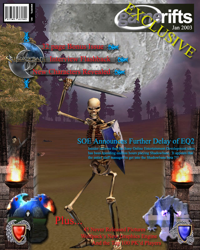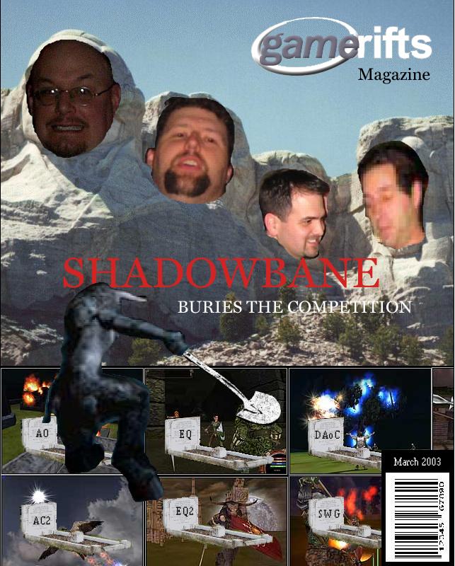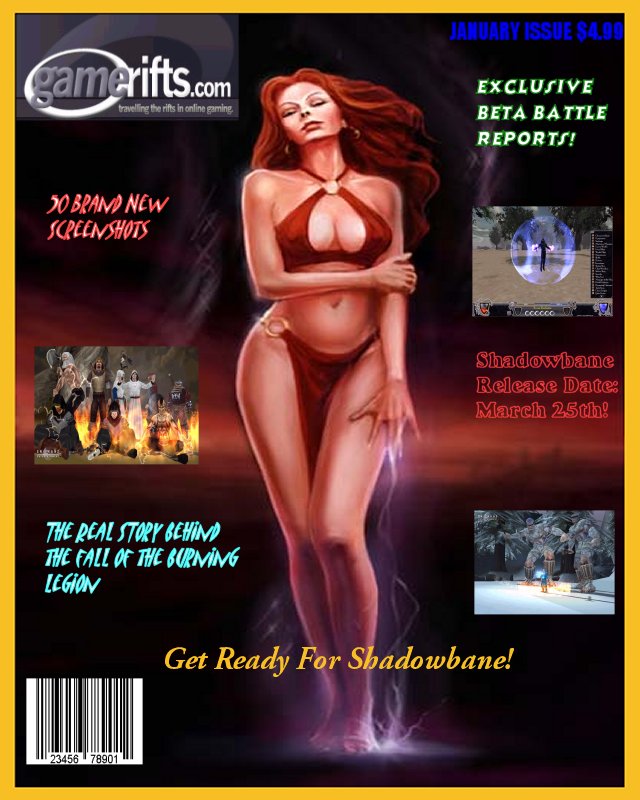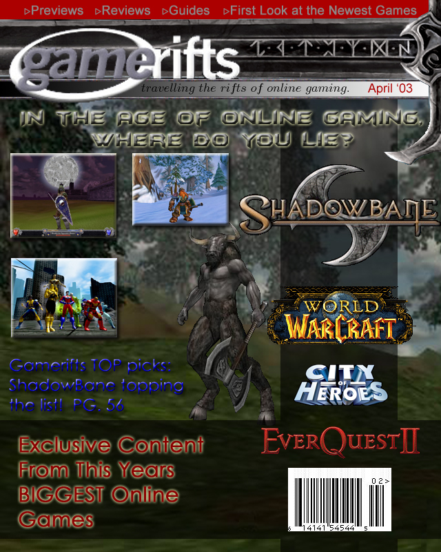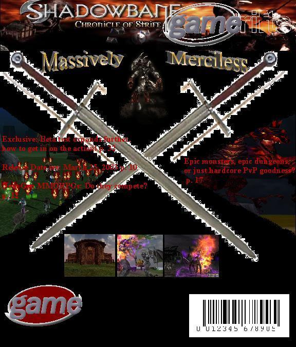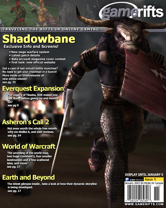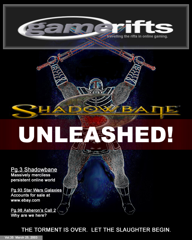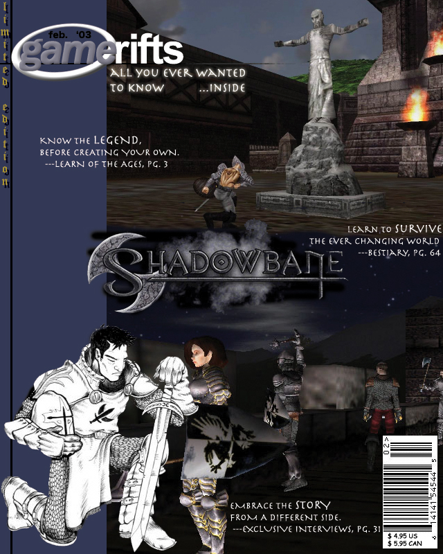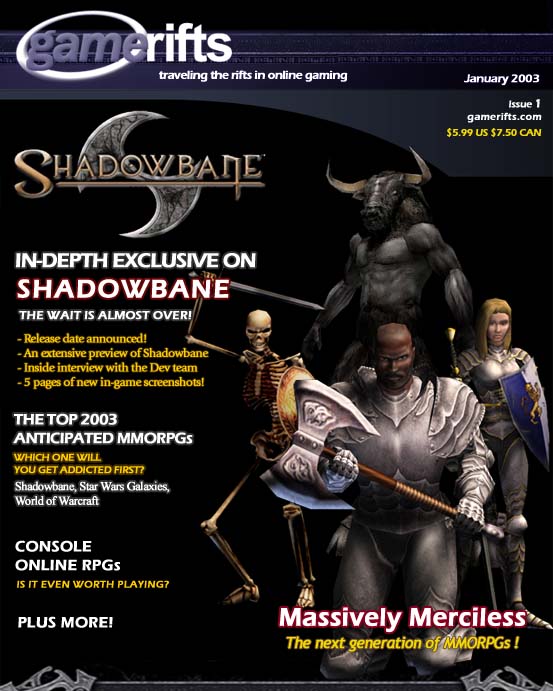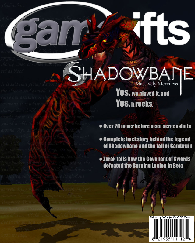 We’ve always wondered what this site would look like, if we were to shut-down and convert it to a monthly magazine dedicated to massively-multiplayer online games, kind of like MOG Magazine. Thanks to Valkyrie of SBSanctum we found out when she launched a community contest for the Shadowbane fans in which they put to use their artistic talents and designed a cover dedicated to the release of one of the most anxiously awaited MMO games to be in development. We even kicked in a prize, and Chris “Vosx” Mancil awarded the runner-ups not with ten beta accounts, but twenty. That rocked!
