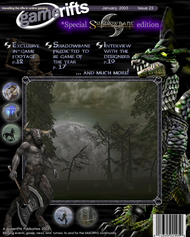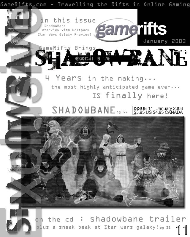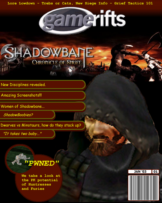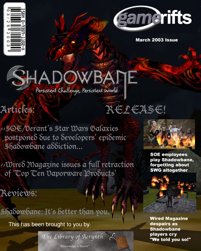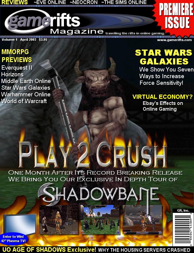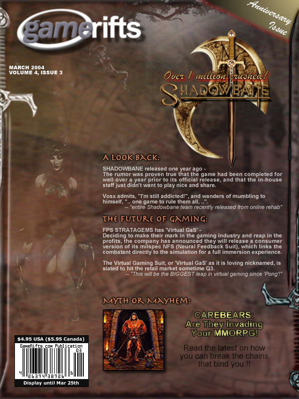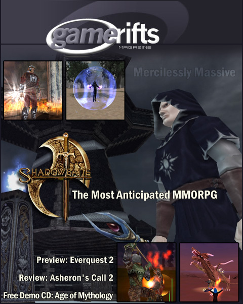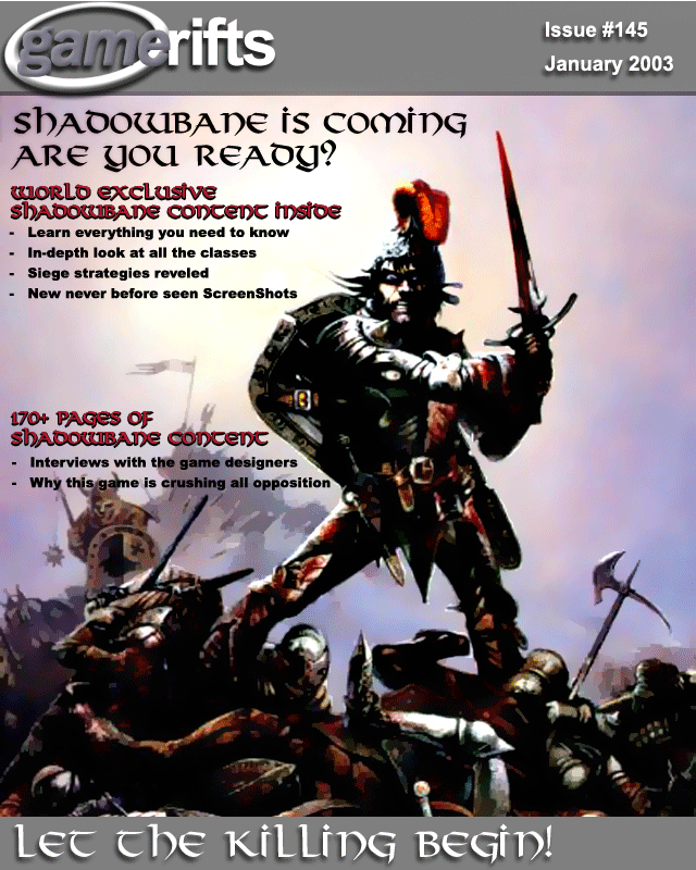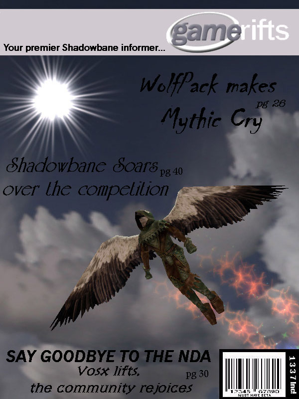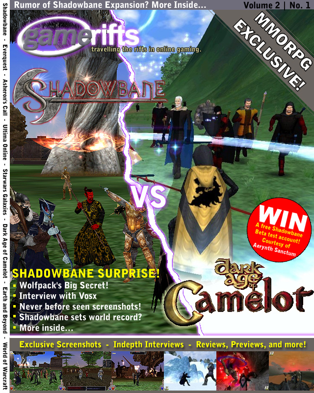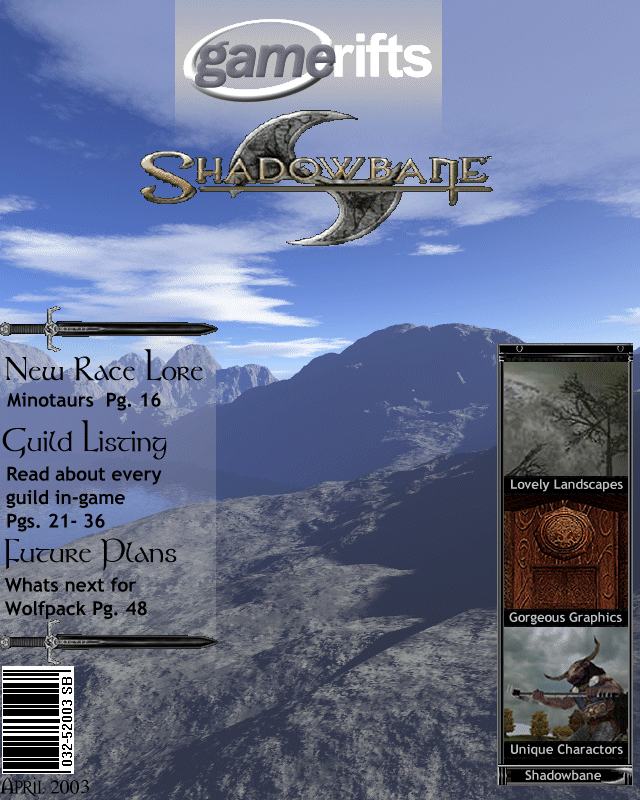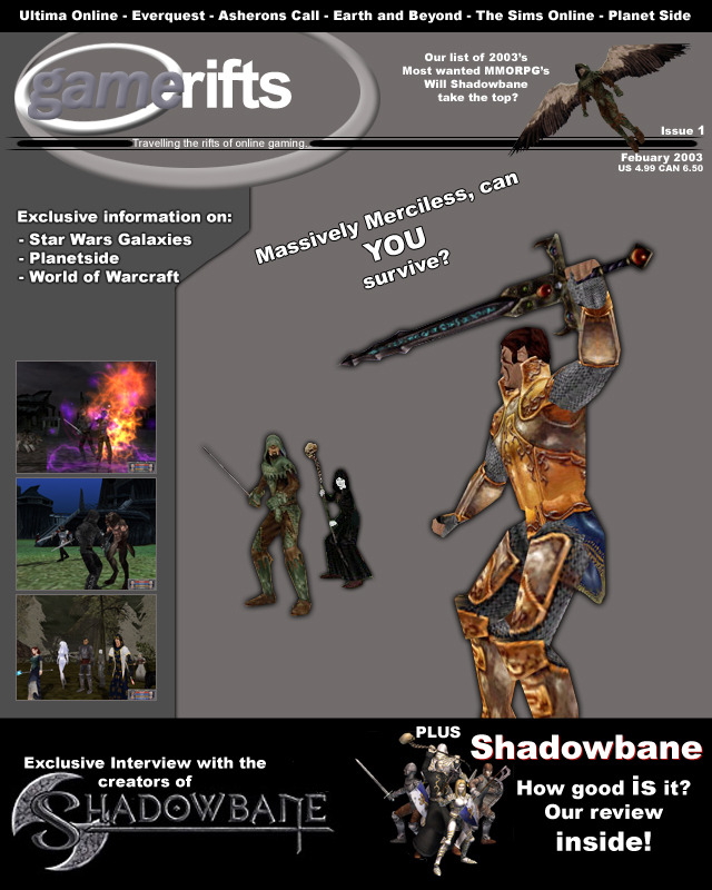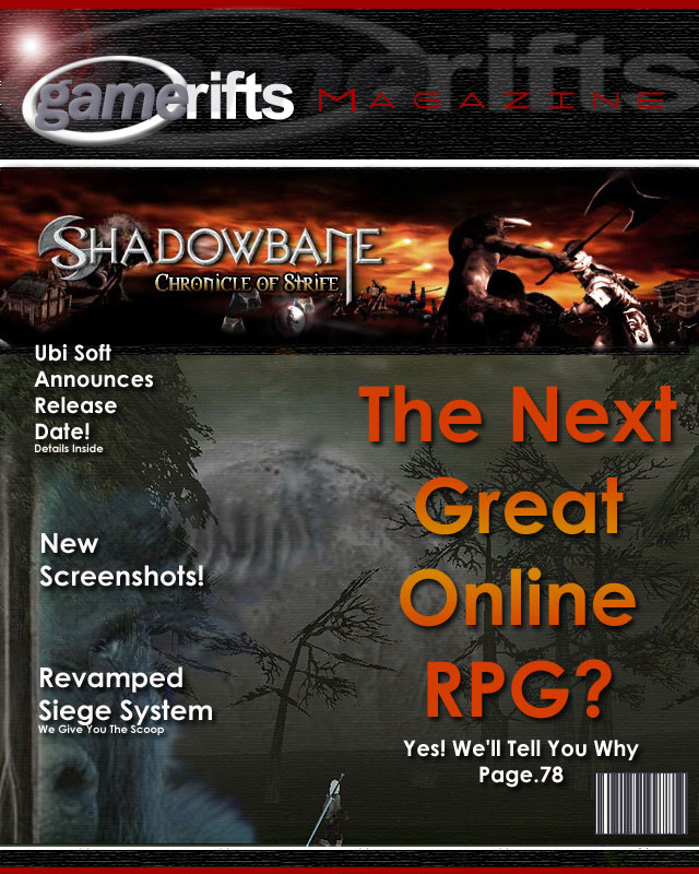 We’ve always wondered what this site would look like, if we were to shut-down and convert it to a monthly magazine dedicated to massively-multiplayer online games, kind of like MOG Magazine. Thanks to Valkyrie of SBSanctum we found out when she launched a community contest for the Shadowbane fans in which they put to use their artistic talents and designed a cover dedicated to the release of one of the most anxiously awaited MMO games to be in development. We even kicked in a prize, and Chris “Vosx” Mancil awarded the runner-ups not with ten beta accounts, but twenty. That rocked!
