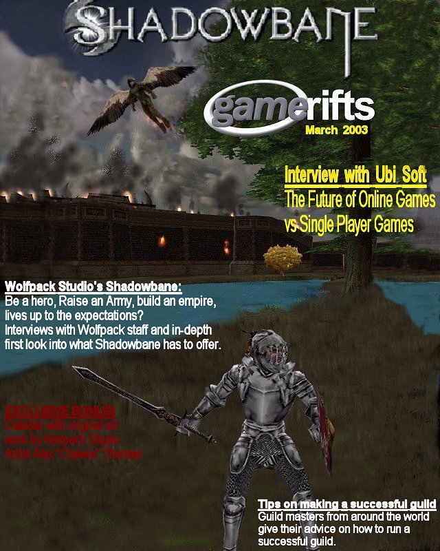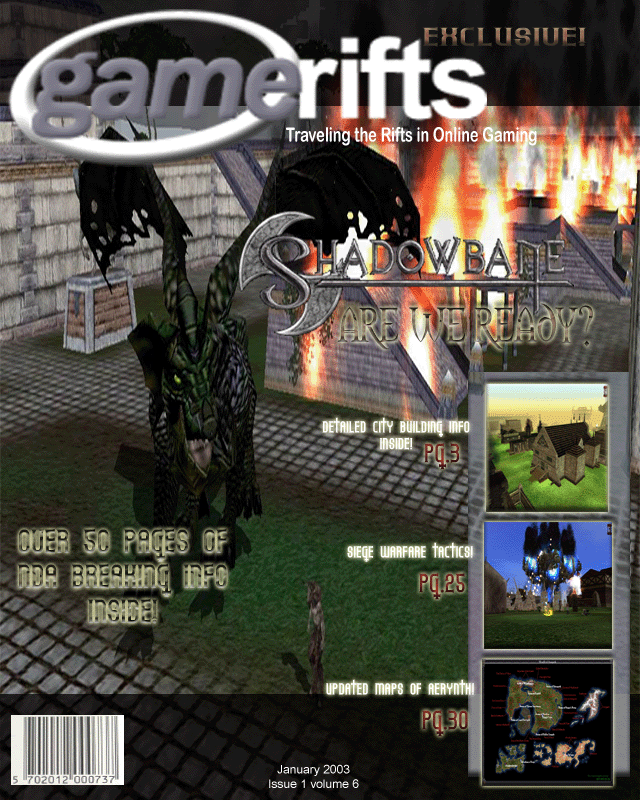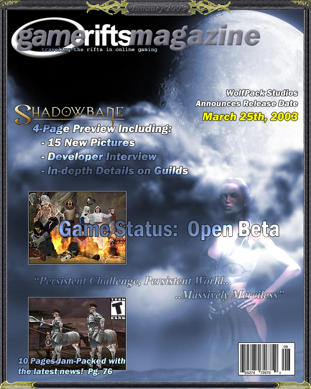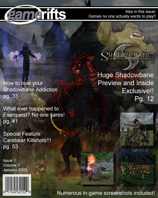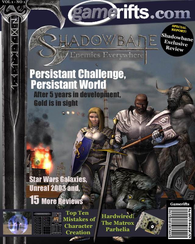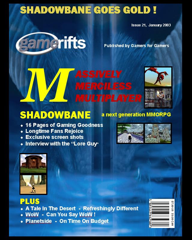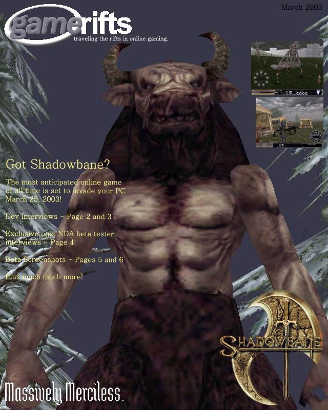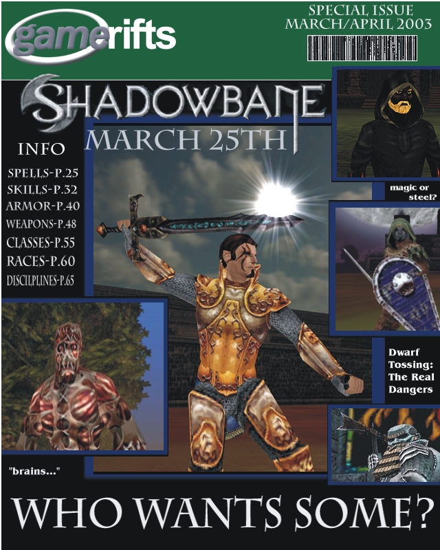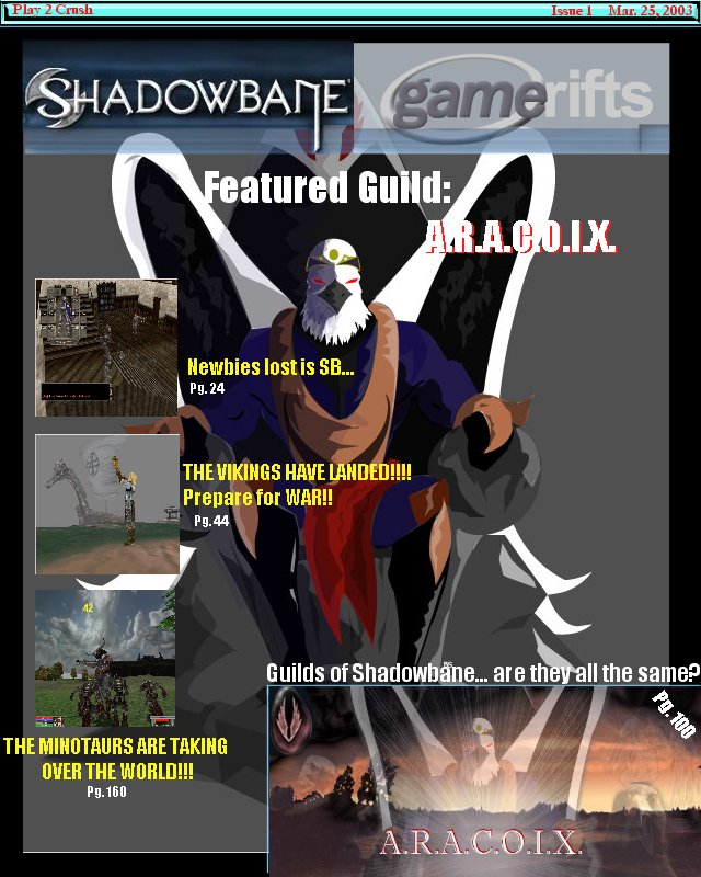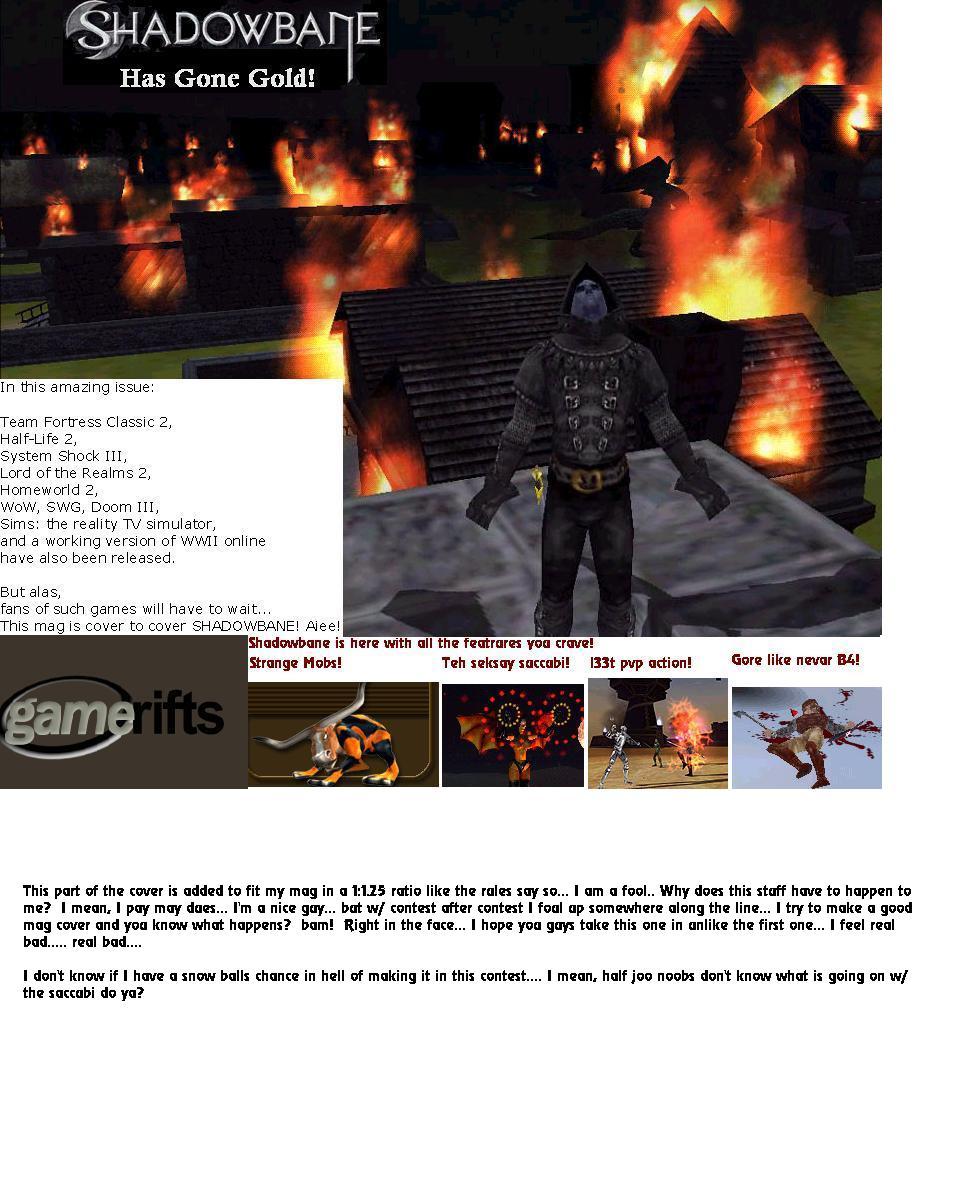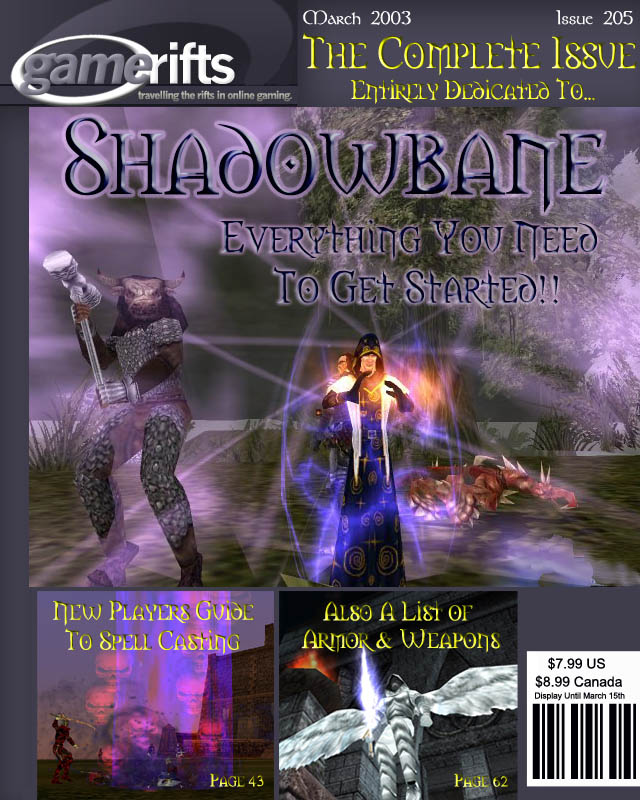 We’ve always wondered what this site would look like, if we were to shut-down and convert it to a monthly magazine dedicated to massively-multiplayer online games, kind of like MOG Magazine. Thanks to Valkyrie of SBSanctum we found out when she launched a community contest for the Shadowbane fans in which they put to use their artistic talents and designed a cover dedicated to the release of one of the most anxiously awaited MMO games to be in development. We even kicked in a prize, and Chris “Vosx” Mancil awarded the runner-ups not with ten beta accounts, but twenty. That rocked!