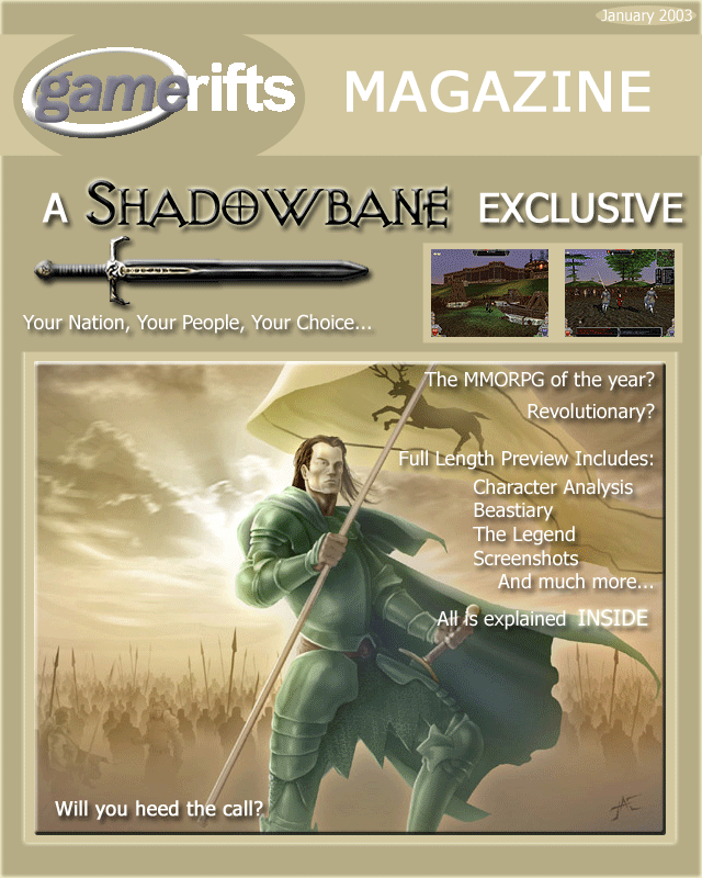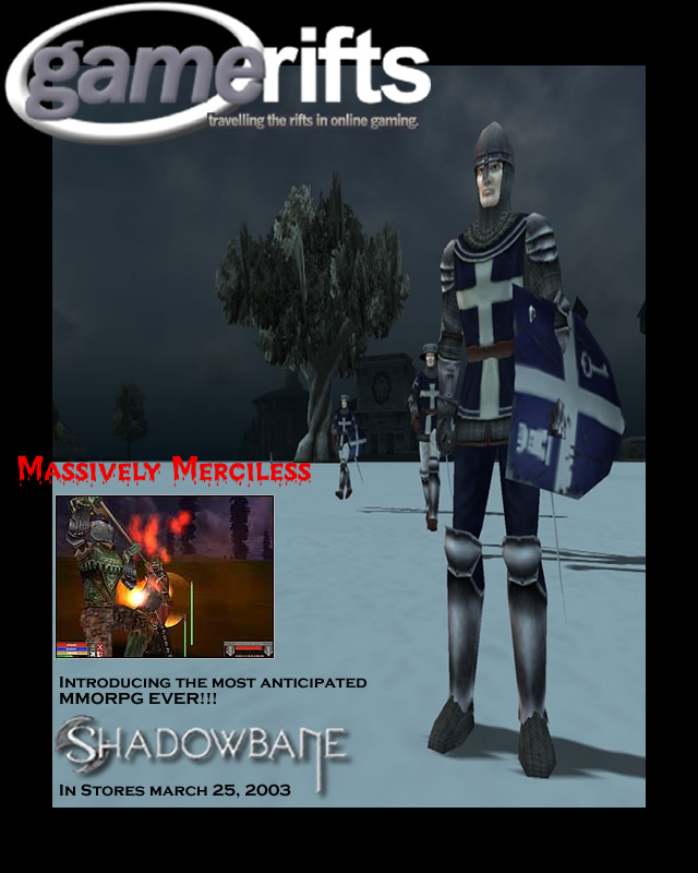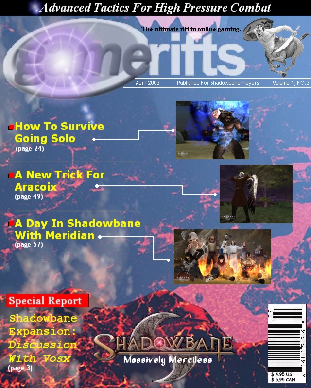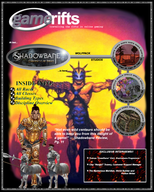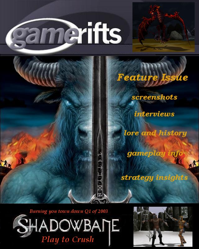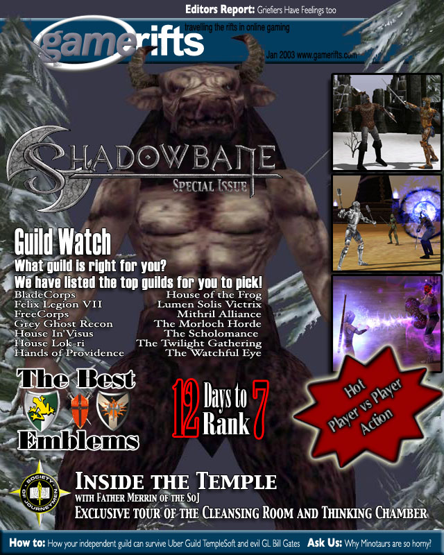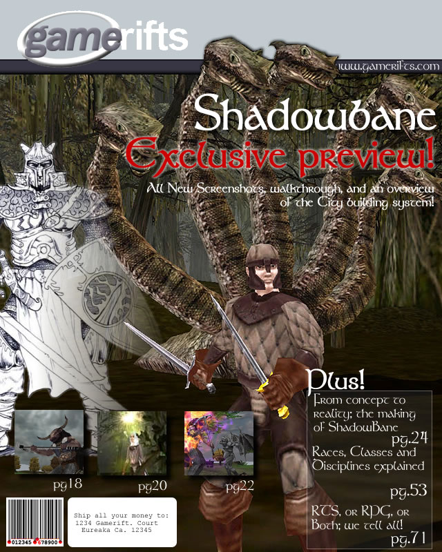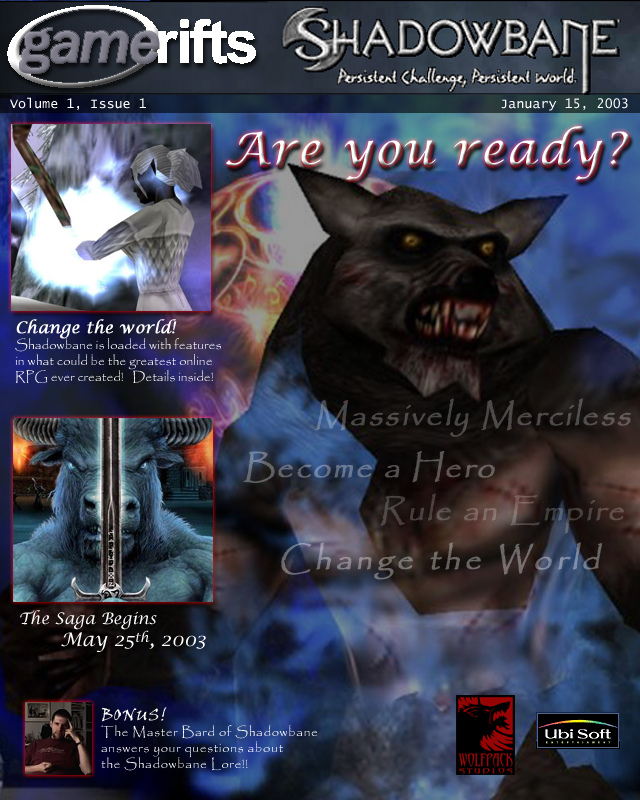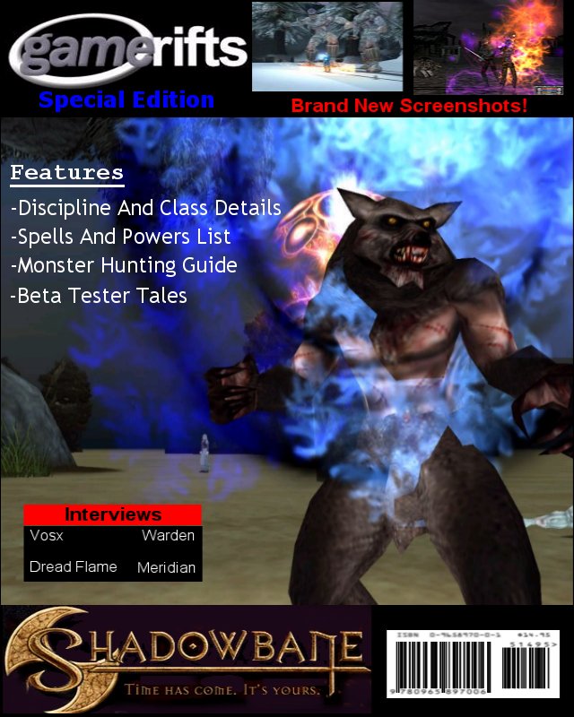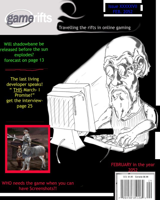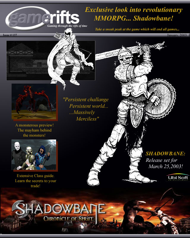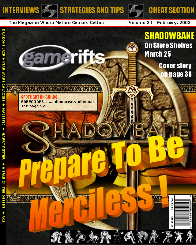 We’ve always wondered what this site would look like, if we were to shut-down and convert it to a monthly magazine dedicated to massively-multiplayer online games, kind of like MOG Magazine. Thanks to Valkyrie of SBSanctum we found out when she launched a community contest for the Shadowbane fans in which they put to use their artistic talents and designed a cover dedicated to the release of one of the most anxiously awaited MMO games to be in development. We even kicked in a prize, and Chris “Vosx” Mancil awarded the runner-ups not with ten beta accounts, but twenty. That rocked!