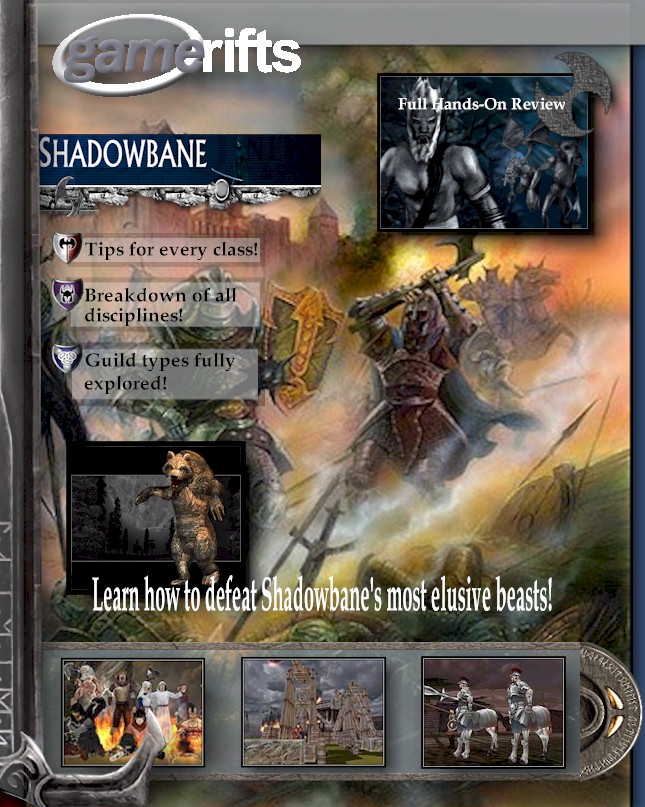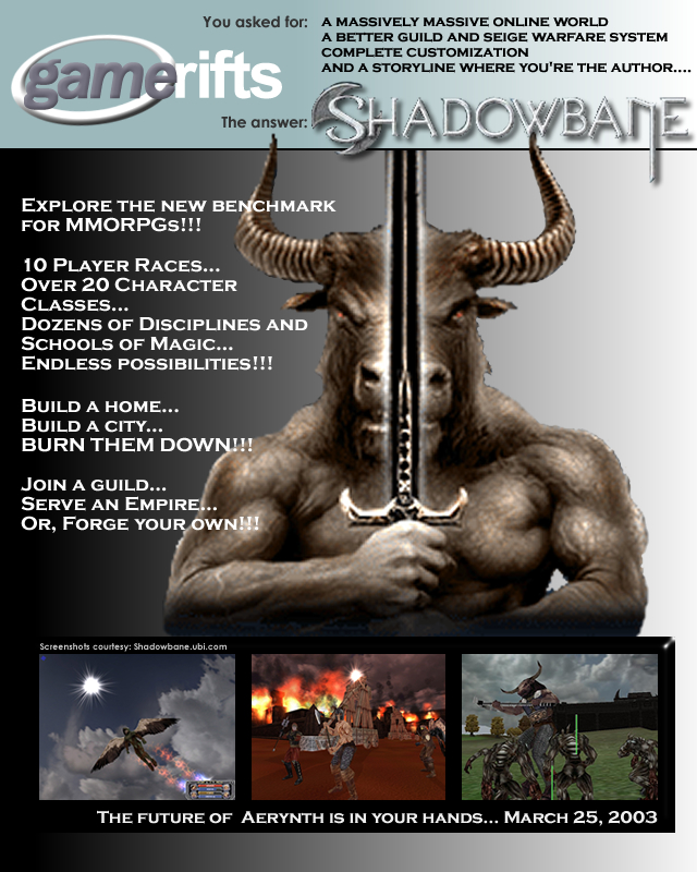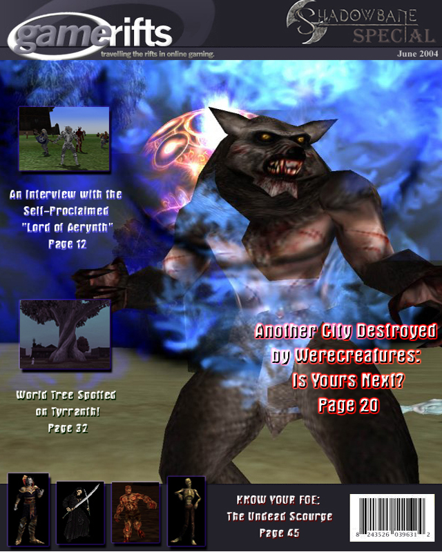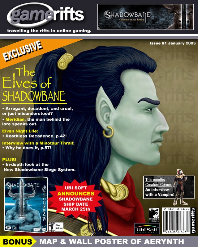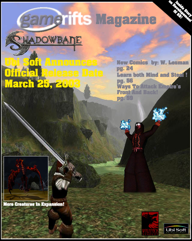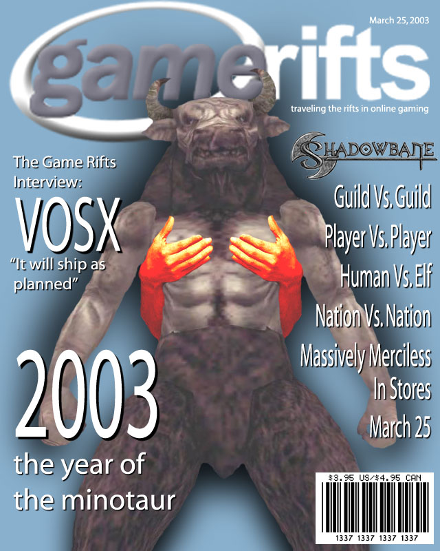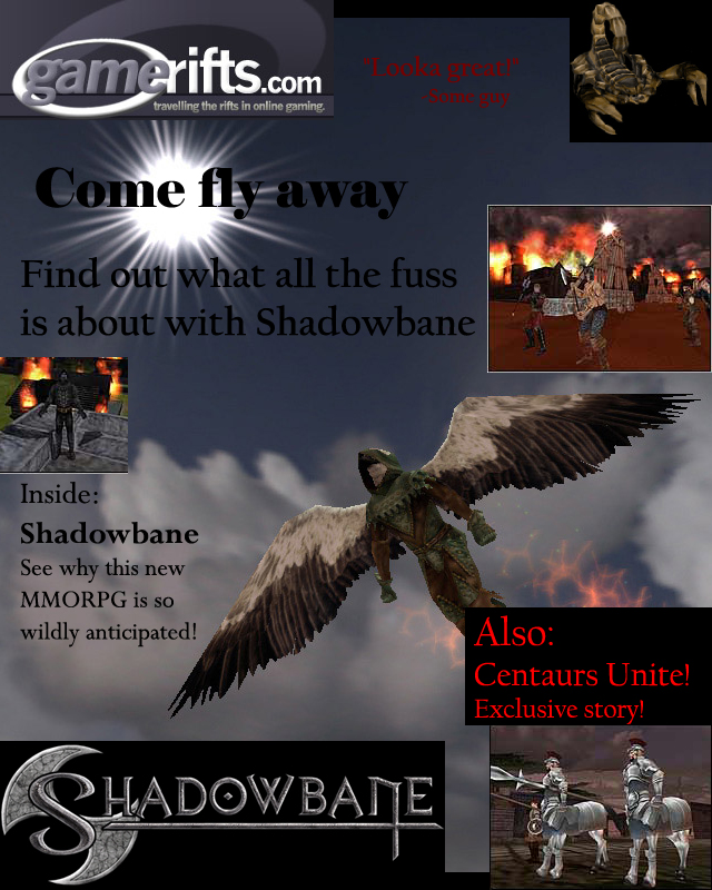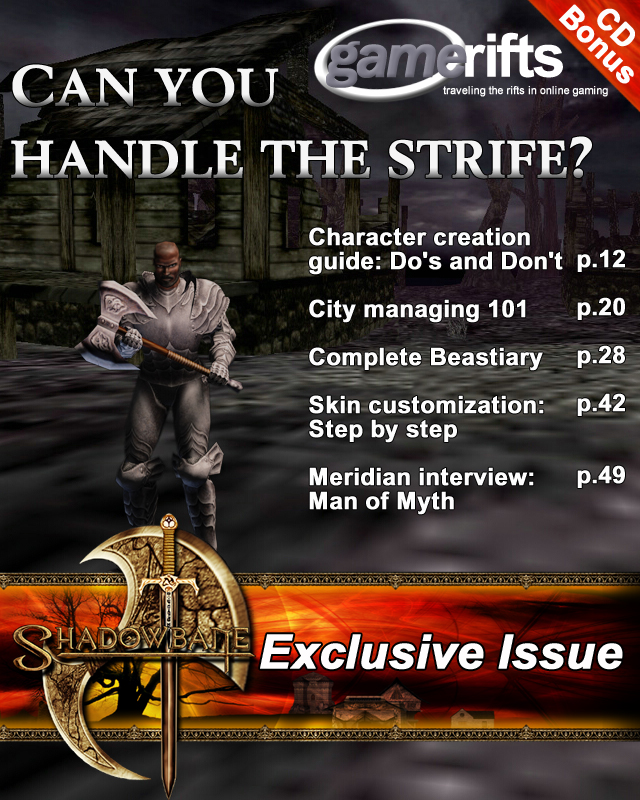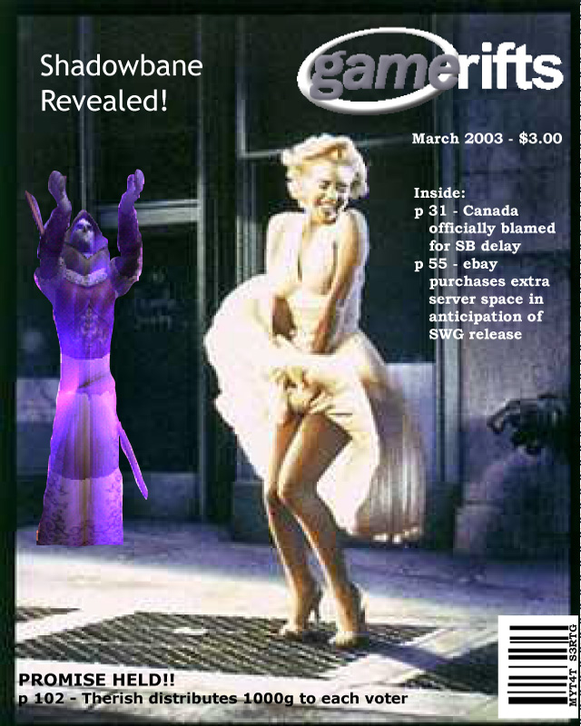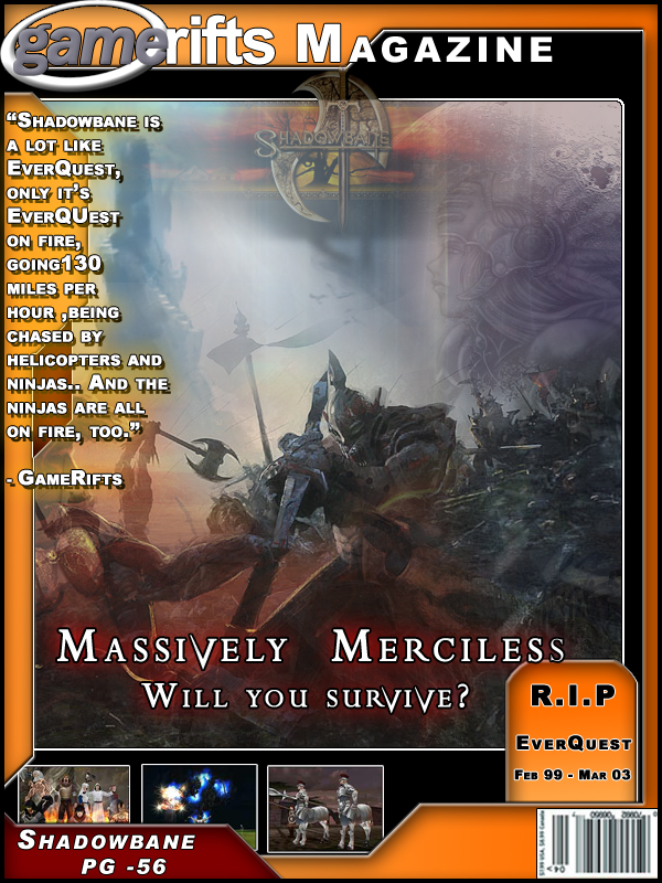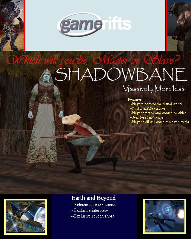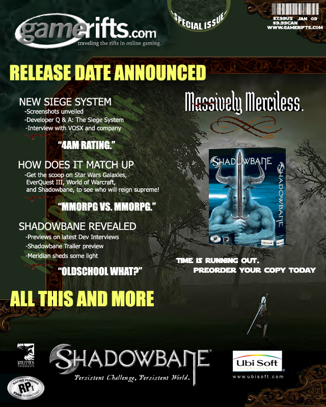 We’ve always wondered what this site would look like, if we were to shut-down and convert it to a monthly magazine dedicated to massively-multiplayer online games, kind of like MOG Magazine. Thanks to Valkyrie of SBSanctum we found out when she launched a community contest for the Shadowbane fans in which they put to use their artistic talents and designed a cover dedicated to the release of one of the most anxiously awaited MMO games to be in development. We even kicked in a prize, and Chris “Vosx” Mancil awarded the runner-ups not with ten beta accounts, but twenty. That rocked!