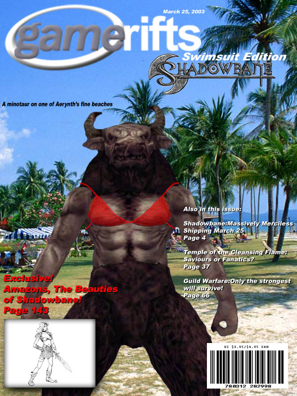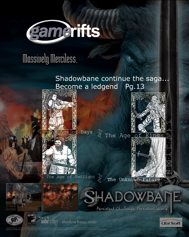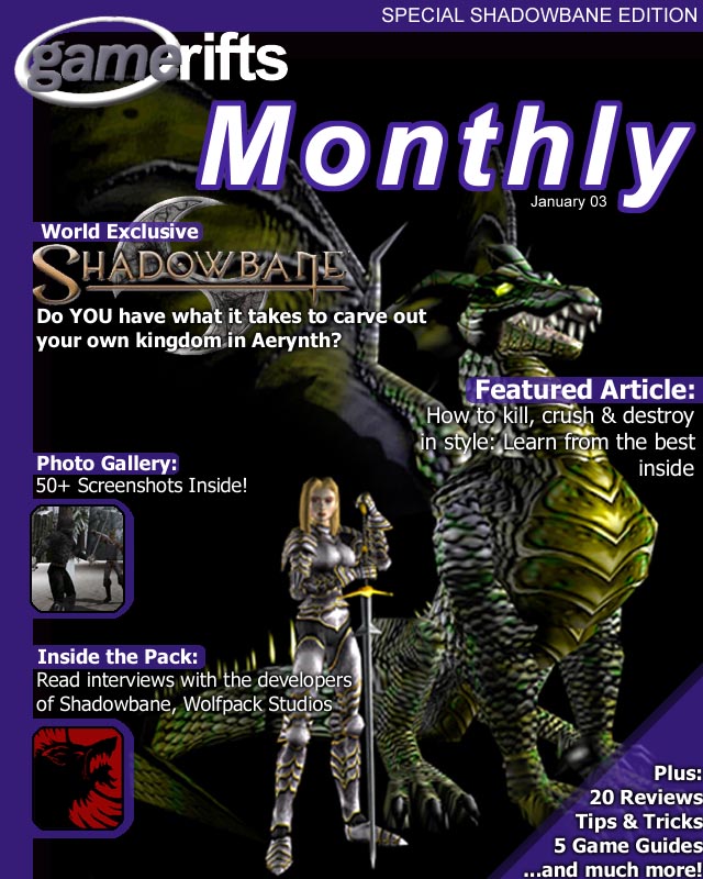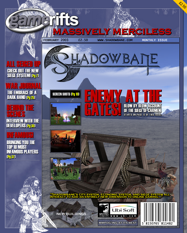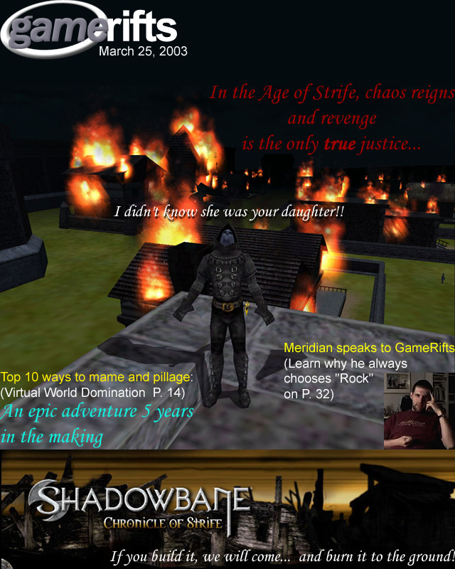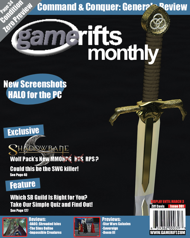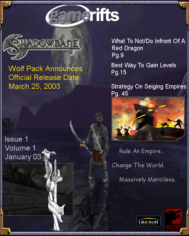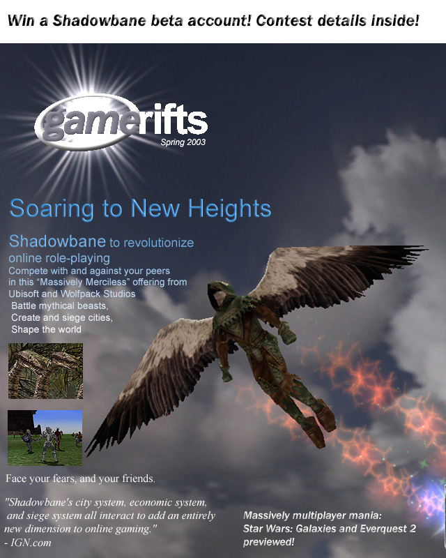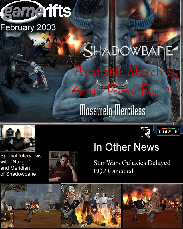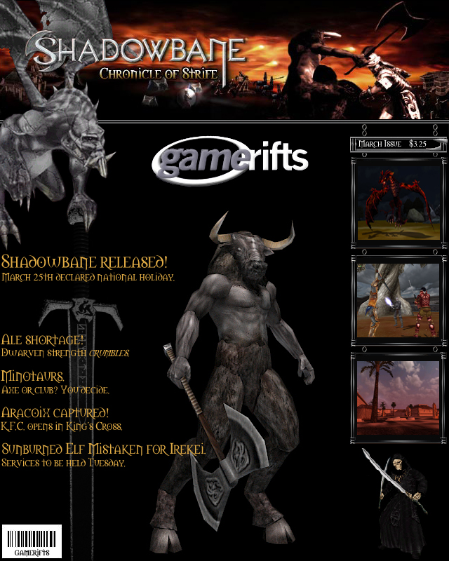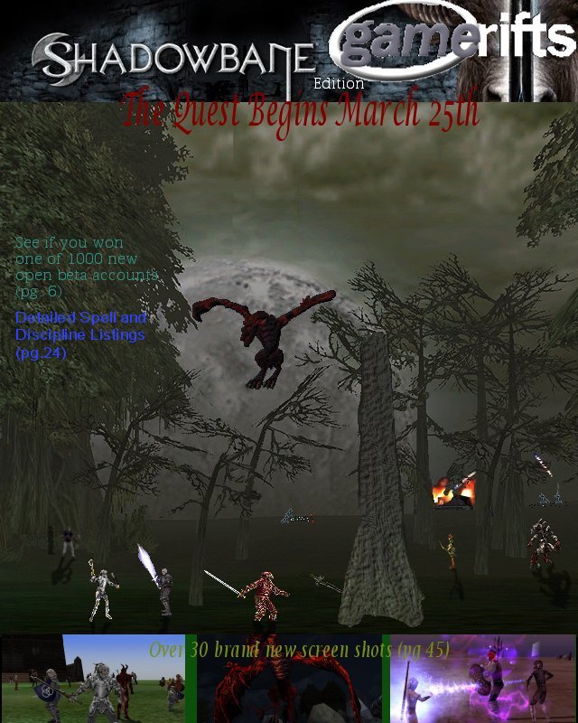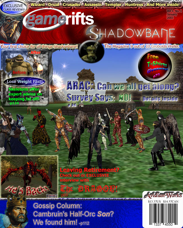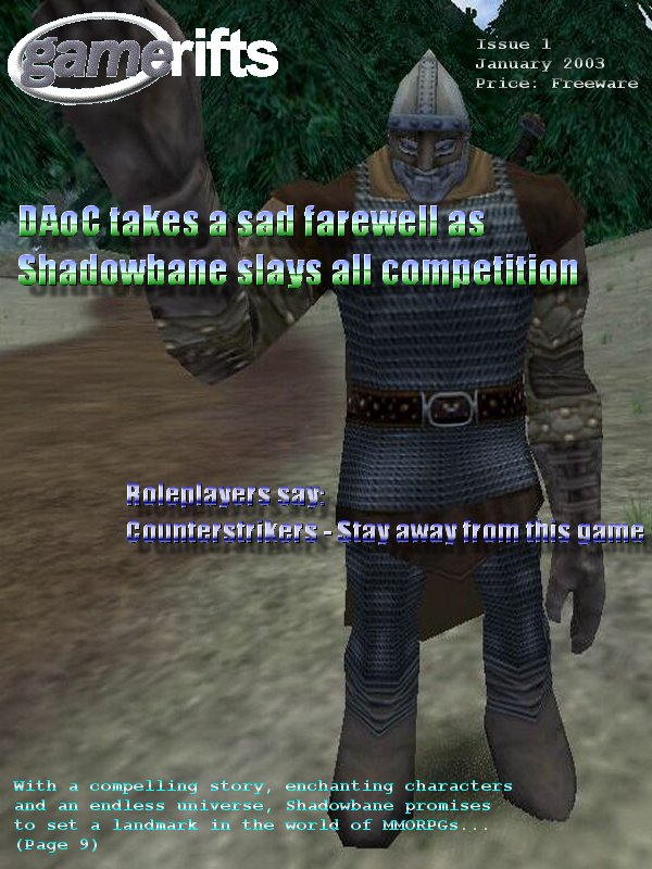 We’ve always wondered what this site would look like, if we were to shut-down and convert it to a monthly magazine dedicated to massively-multiplayer online games, kind of like MOG Magazine. Thanks to Valkyrie of SBSanctum we found out when she launched a community contest for the Shadowbane fans in which they put to use their artistic talents and designed a cover dedicated to the release of one of the most anxiously awaited MMO games to be in development. We even kicked in a prize, and Chris “Vosx” Mancil awarded the runner-ups not with ten beta accounts, but twenty. That rocked!