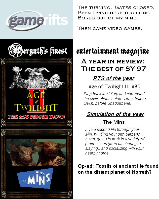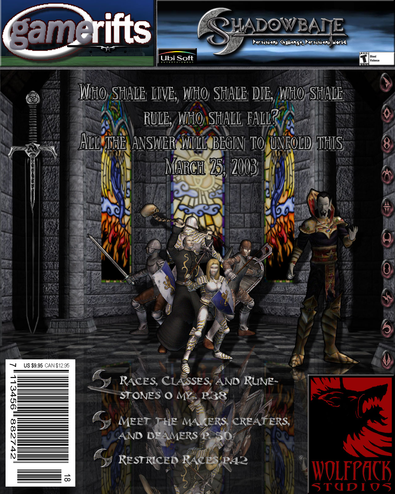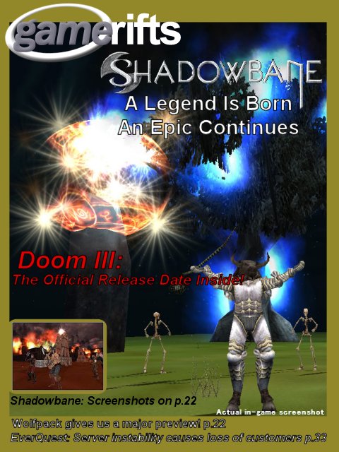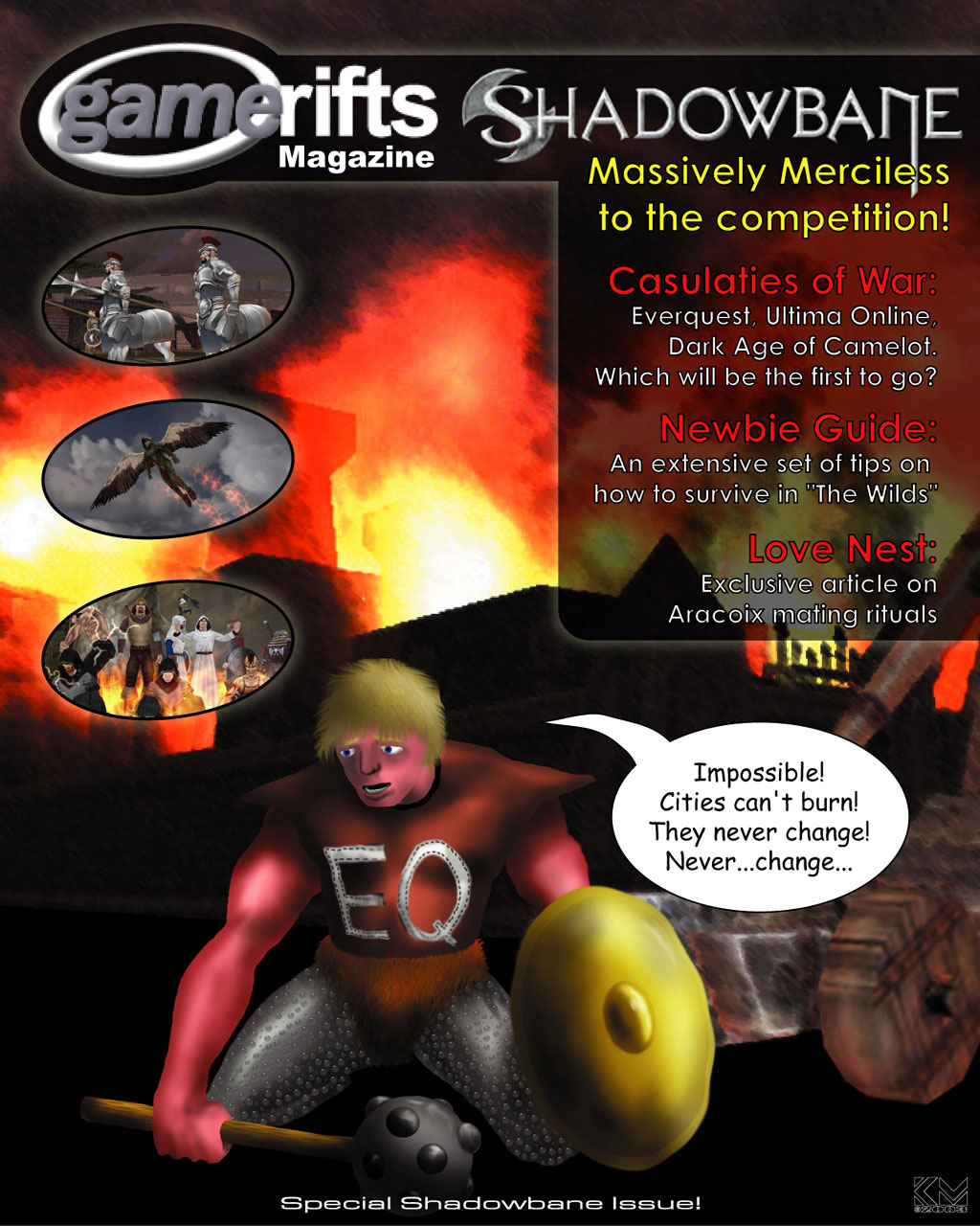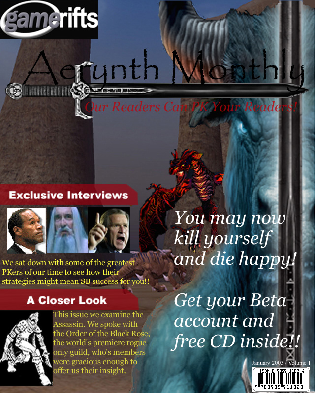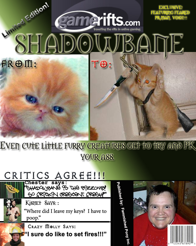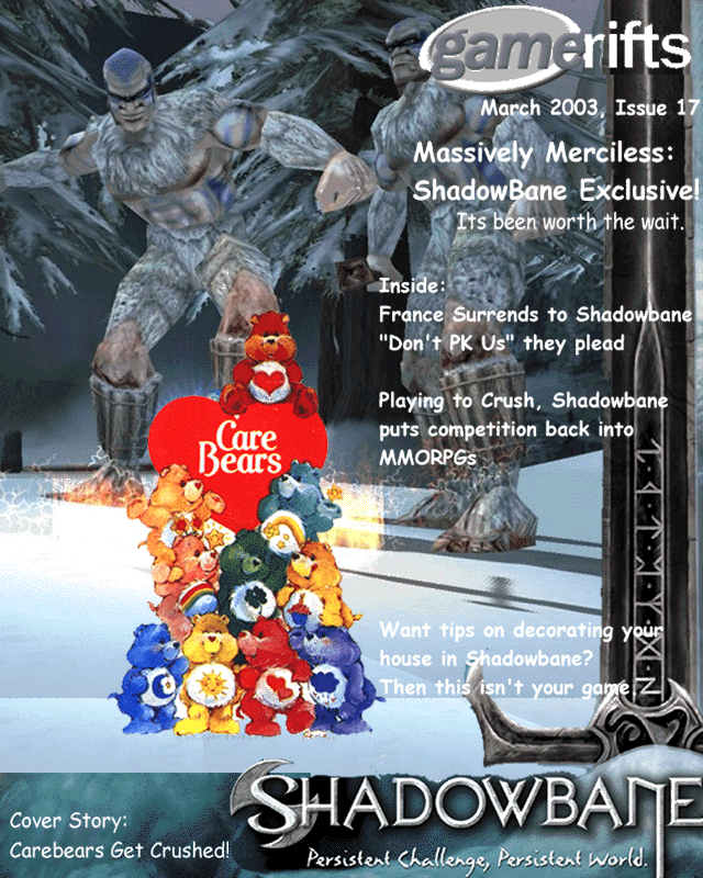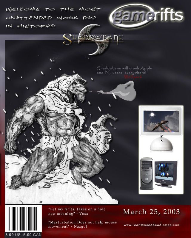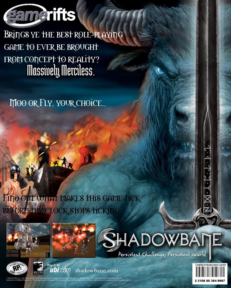 We’ve always wondered what this site would look like, if we were to shut-down and convert it to a monthly magazine dedicated to massively-multiplayer online games, kind of like MOG Magazine. Thanks to Valkyrie of SBSanctum we found out when she launched a community contest for the Shadowbane fans in which they put to use their artistic talents and designed a cover dedicated to the release of one of the most anxiously awaited MMO games to be in development. We even kicked in a prize, and Chris “Vosx” Mancil awarded the runner-ups not with ten beta accounts, but twenty. That rocked!